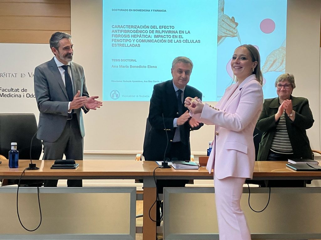 Congratulations to our colleague Ana María Benedicto Elena, who has defended beautifully her doctoral thesis “Characterisation of the anti-fibrogenic effect of rilpivirine in liver fibrosis: impact on stellate cell phenotype and communication.”